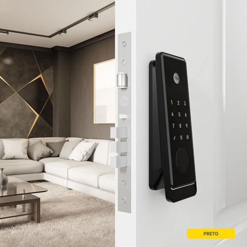 Tipos de abertura: Senha numérica, impressão digital, cartão, chave de segurança ou App Yale Connect